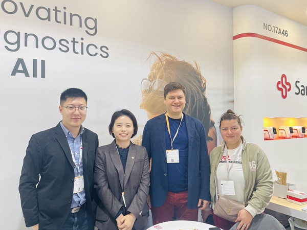 展会现场,除了明星产品iPonatic III人气不减外,还有近期获得欧盟CE IVDR认证的全自动化学发光免疫分析仪Surelite 8和Surelite 16也吸引了众多参展者驻足。该系列产品继承了化学发光灵敏度高、测值准确稳定、自动化程度高的优点,迎合国际市场需求设计的试剂耗材一体化、单人份检测、即来即检等特点更是让其首次亮相欧洲,便收获广泛好评,赢得大量客户关注。